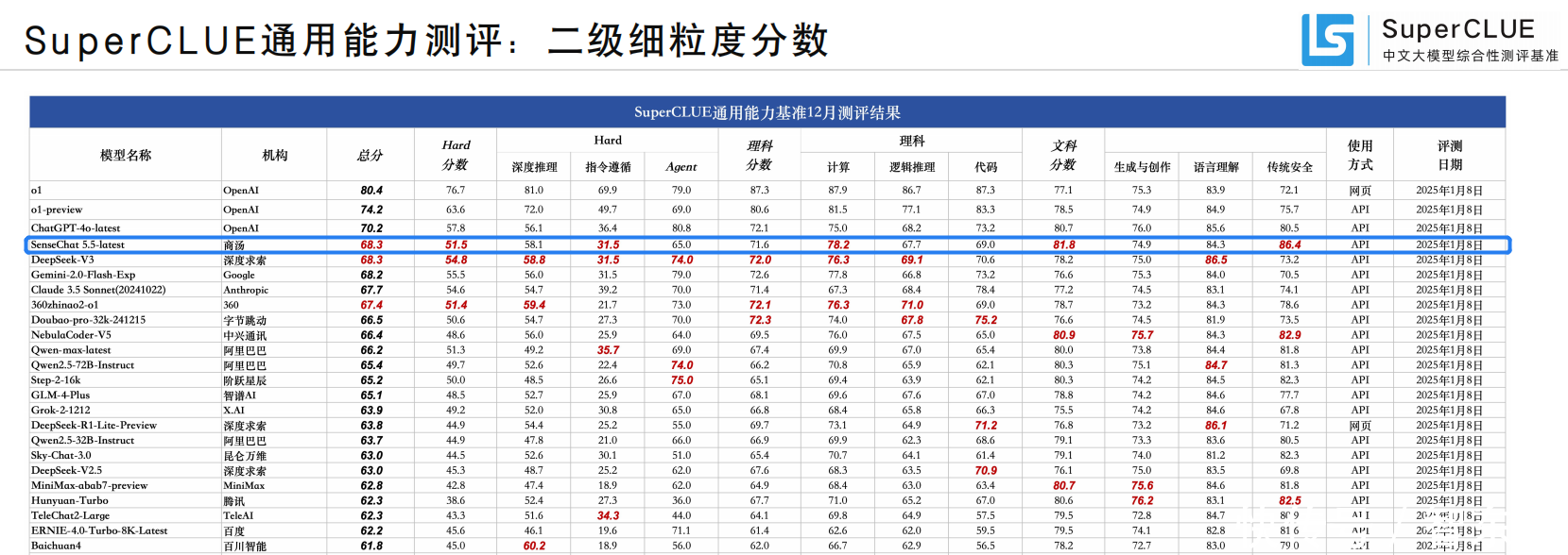 上述有趣有用又有梗的回复背后,是来自国内首个采用原生融合方法的多模态模型——商汤 “日日新”融合大模型。 多模态融合是指将文字、图像、视频、声音等多种信息整合在一起,进行全模态的分析和理解。依照模态融合路径训练的模型能够更好地处理跨模态任务,具备类似人类的认知方式、更强的泛化能力、更广泛的应用场景以及更强大的推理能力。 从上述的例子中也可以看出,“日日新”能从画面中提取文字中未包含的信息,并综合文字和画面中的要素,给出与场景高度契合的回复。 “日日新”融合大模型在原生融合模态训练上,突破传统方法局限,实现了两个关键技术创新,解决了困扰多模态研究的“跷跷板”问题,成功跨越了模态之间的鸿沟。 在最近的两项权威评测中,商汤用单一模型挑战图文多模态、纯语言与推理等各项任务,并战胜其他所有单一模态模型,通过“换道超车”,跃升至国产大模型领跑行列。